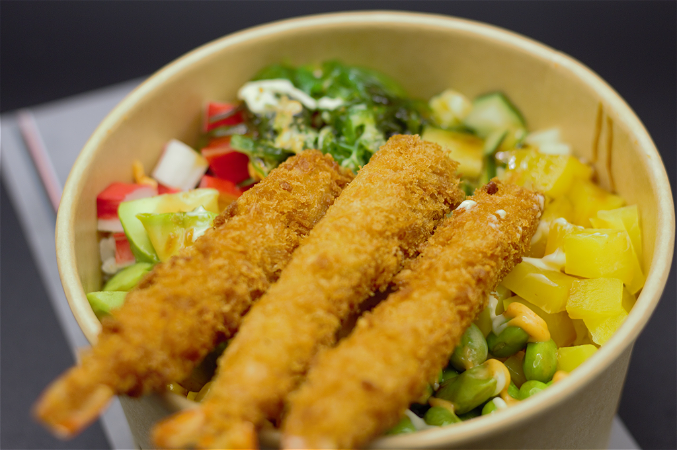 Tempura garnaal, krab, avocado,en omhuld met zalm,tonij,gefriuurde softshell,viskaviaar,mayo, yakitori saus,chilimayo saus